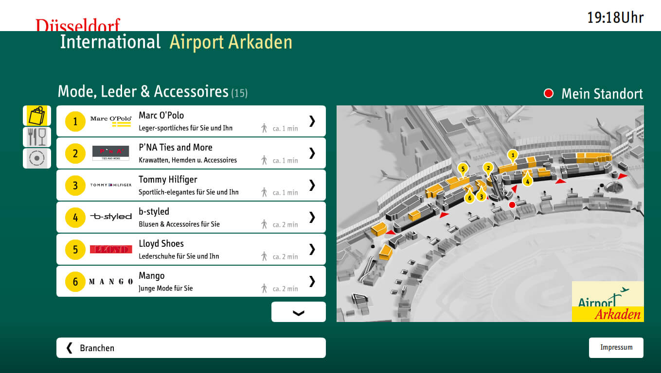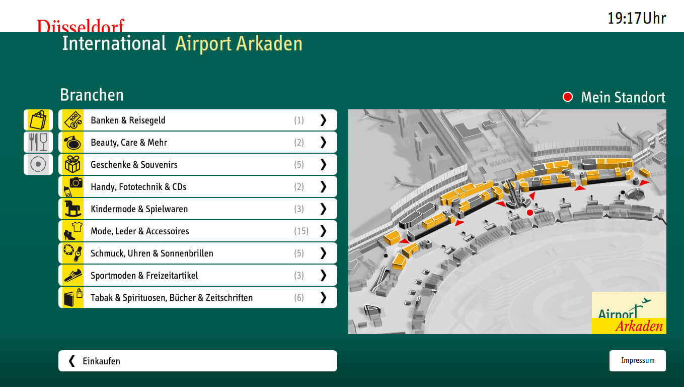 Developed as a prototype for Düsseldorf Airport, this single-touch information center was designed to help travelers quickly navigate and search for key points of interest within the airport. The focus was on creating a simple, intuitive interface tailored to high-traffic public spaces and diverse user needs.